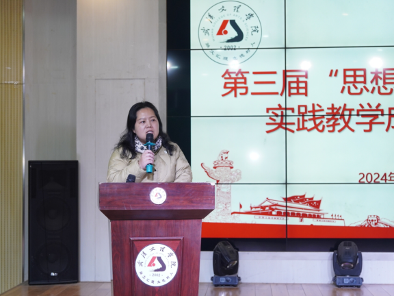 刘兰兰在活动的总结讲话中高度评价了本次活动的成功举办和取得的显著成果。她深入浅出的评价了此次参赛作品的优缺点;赞扬了此次作品的优秀与丰富,形式多样;同时希望同学们能够再深化一下自己的感悟优化细节。她指出,实践教学是思政课教学的重要组成部分,是把思政课和社会实践、专业课等有机联系在一起,有效的体现了思政小课堂社会大课堂的作用,搞好思政课社会实践对于培养学生的综合素质和创新能力具有重要意义,她鼓励广大思政课教师继续深化实践教学改革,探索更多有效的教学方法和手段,为培养担当民族复兴大任的时代新人贡献力量。