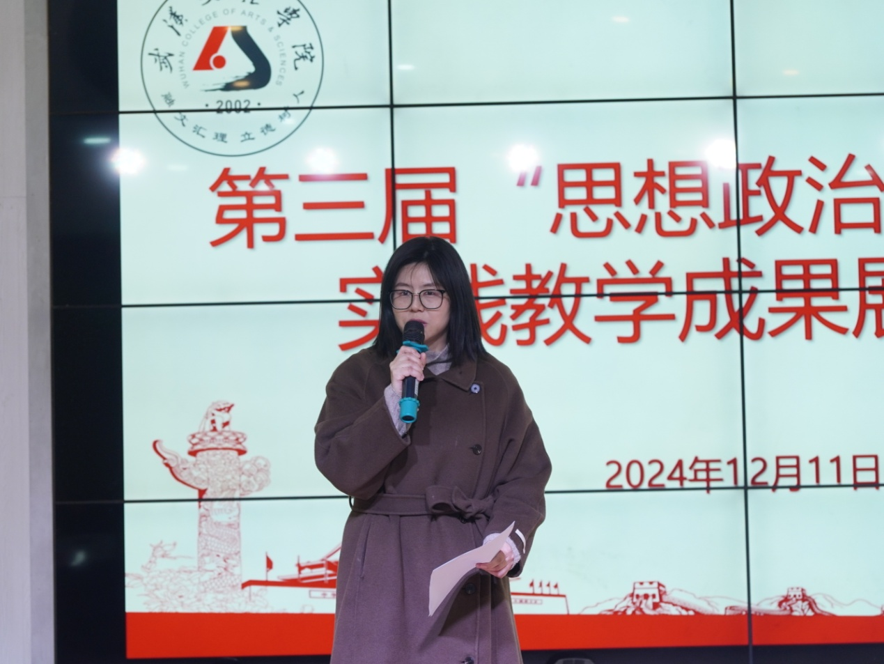 在会上,曹卓就本次实践教学展示活动作了说明。她介绍到,为全面贯彻落实教育部关于高校思政课实践教学的任务要求,推进思政课实 践教学取得成效,推动思政课高质量发展,自2022年米兰milan官方网站成立之初,5门思政主干课均被分配了实践教学学时,每门思政课的实践教学主题也被确定,逐步形成了我校思政课实践教学改革方案并实施完善,2023年开始举办我校思政课实践教学成果展示活动,现已是第三届,经过了三届的积累,学生的实践教学作品形式和内容越来越丰富,涵盖了演讲、沉浸式场馆讲解、情景剧扮演、访谈实录、社会调查报告、项目策划等多种类型,从经典著作深入经济前沿,从红色场馆来到山间地头,从世界风云回看校园家乡,丰富多样的优秀实践教学作品充分展示了新时代大学生的思想素养和精神风貌。随后,一系列实践成果亮点纷呈,让人目不暇接。这些成果以生动的形式展示了同学们在实践教学中的所学所悟,不仅深化了对思政理论的理解,更提升了实践能力和社会责任感。