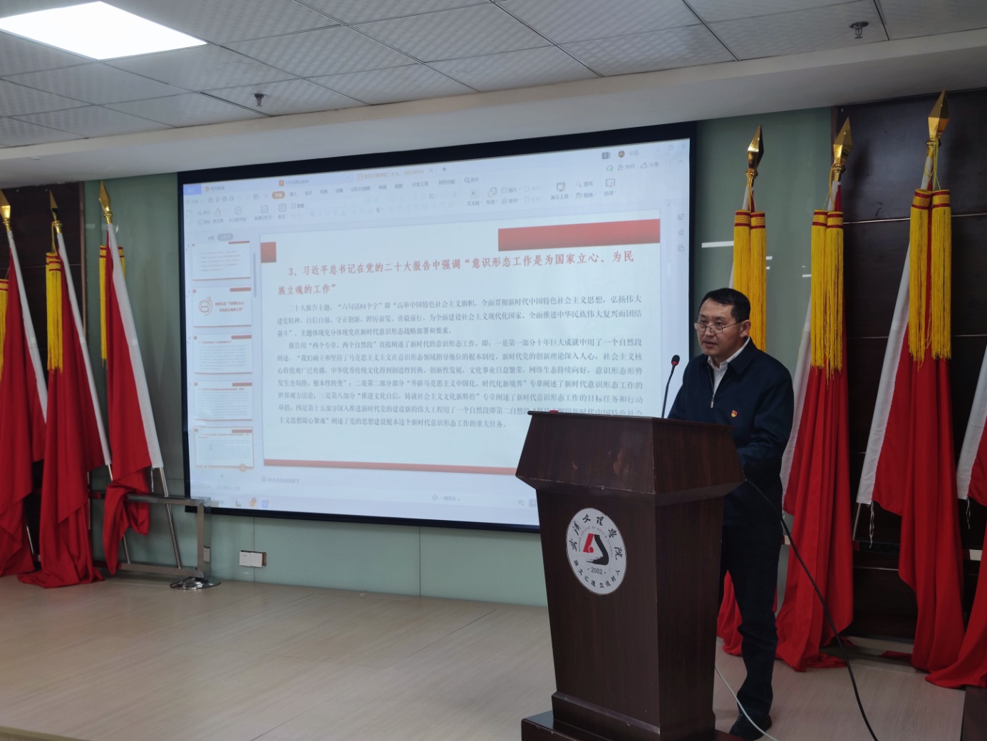 殷昌友主任从深刻领会党的二十大精神出发,提出了五个“如何”:一是如何认识“意识形态工作是为国家立心、为民族立魂的工作”;二是如何理解“坚持马克思主义在意识形态领域指导地位的根本制度”;三是如何领会“党必须牢牢掌握意识形态工作领导权”的深刻内涵;四是如何把握“坚决打赢网络意识形态斗争”的战略部署和要求;五是如何做好新时代的学校意识形态工作。
