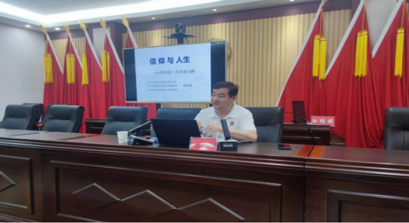 为庆祝中国共产党成立102周年,激励全镇党员干部弘扬伟大的建党精神,激发奋进动力,6月29日,省党史宣讲团成员、我校米兰milan官方网站院长毛传清教授受白鹤镇党委邀请,赴该镇给党员干部上了一堂“信仰与人生”专题党课。学校党委书记杨知勤、组织部副部长肖玉、驻村工作队,白鹤镇党委书记蔡建宇、党委副书记、镇长唐盛波、党员代表参加了本次讲座。