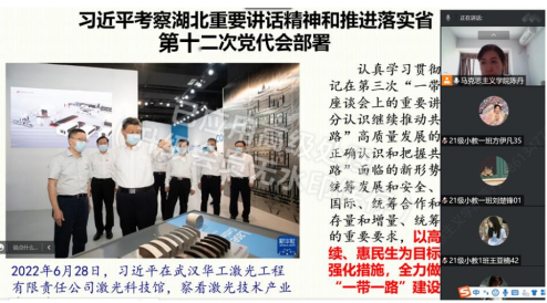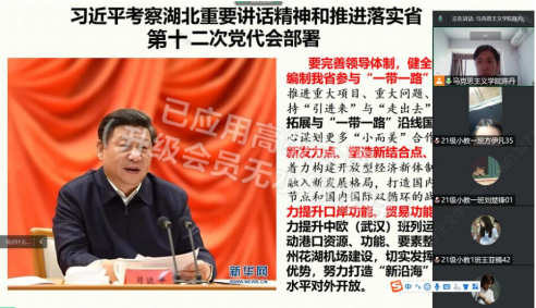 为进一步深刻认识习近平总书记考察湖北的重大意义。坚决把总书记的殷殷嘱托转化为做好湖北工作的实际行动,立足新发展阶段,完整、准确、全面贯彻新发展理念,推进落实省第十二次党代会部署,努力建设全国构建新发展格局先行区,教育引导师生创造新时代更加辉煌的业绩。根据省委宣传部,省教工委的指示,米兰milan官方网站发扬思政政治理论课主阵地作用,把习近平总书记考察湖北重要讲话精神及省第十二次党代会部署融入课堂,纳入新学期“开学第一课。
