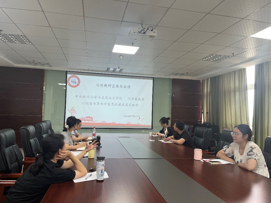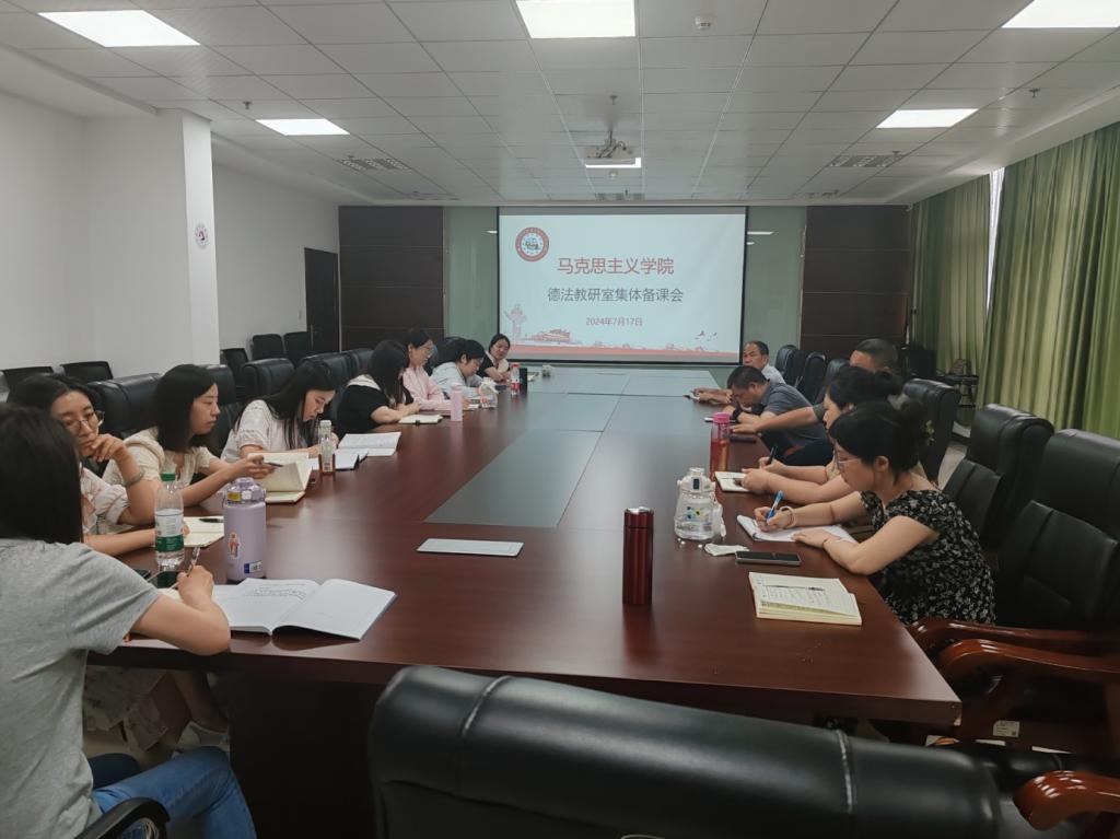 马原教研室围绕两个议程开展集体备课,首先布置2024-2025-1学期前期准备工作,其次共同学习探讨2024年马克思主义基本原理OBE教学大纲、云班课的使用情况、教学效果、实践教学等问题。
